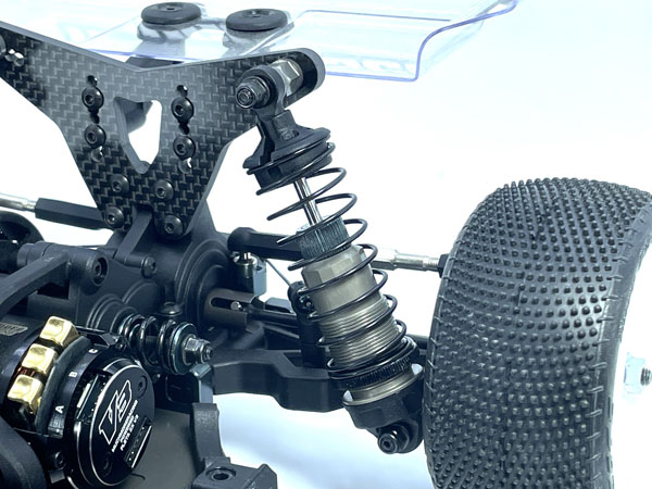 リヤショックを上下逆さまに取り付け低重心化することで、ハイグリップ路面でのコーナリング