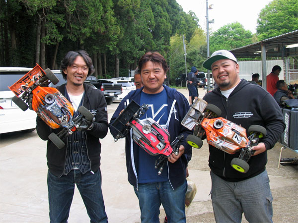 | オープンクラスAメイン決勝レースはTQスタートの大阪選手がトップに立ち、鶴田選手、田中選手、大塚選手が追う展開でスタート、序盤は大阪、鶴田選手が順位を入れ替えながら周回を重ねていきます。中盤以降先頭の2台が徐々に3位以下を引き離し大阪、鶴田選手の一騎打ちとなりテール・トゥ・ノーズで周回を重ねます。その後も順位を何度か入れ替わりながら2人のバトルが続きましたが、残り5分となったところで鶴田選手がエンジンストールで後退、大阪選手がそのままトップゴールを決め全戦に続きTQ&優勝を飾りました。トップと1ラップ差の2位に大塚選手、2ラップ差の3位に鶴田選手でした。オープンクラスのシリーズポイントは大阪選手が300ポイントでトップに立ち、鶴田選手が280ポイントで2位に、そして大塚選手が243ポイントで3位につけています。 |